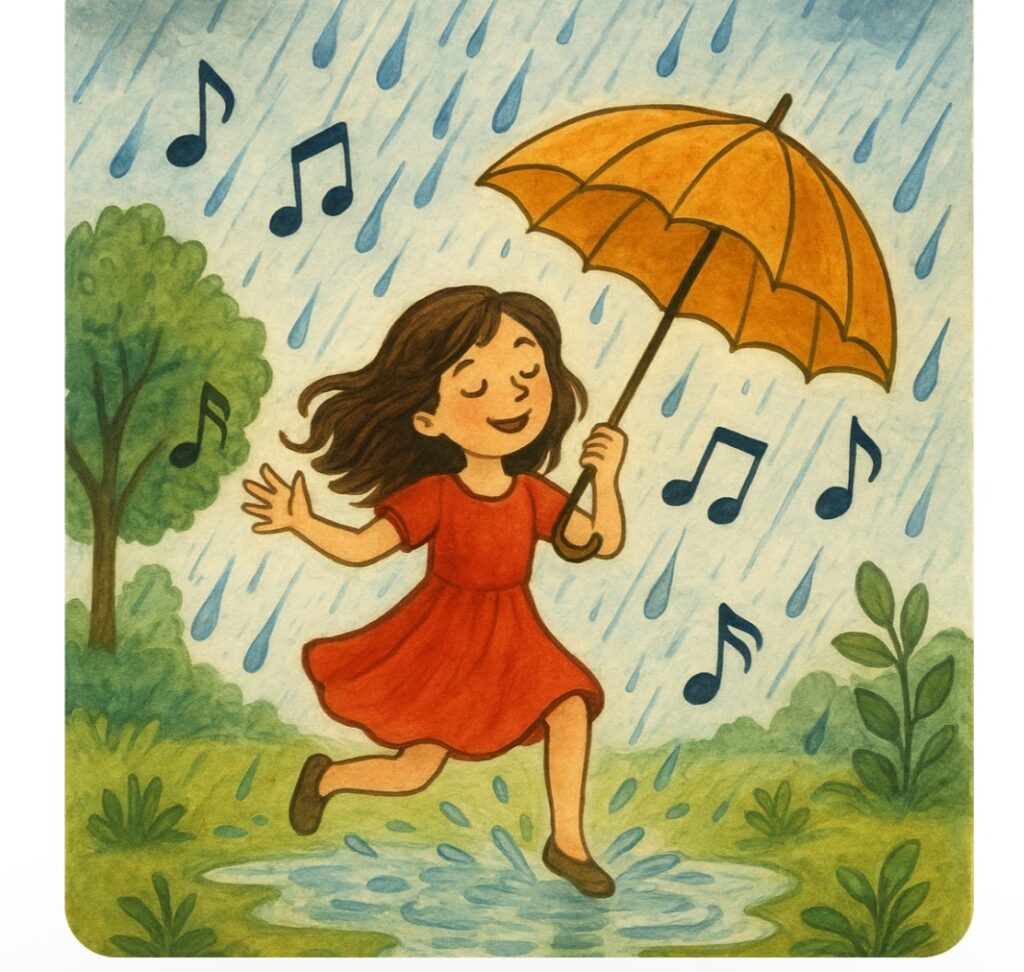 זִמְרַת הַגֶשֶם עם טיפות המים